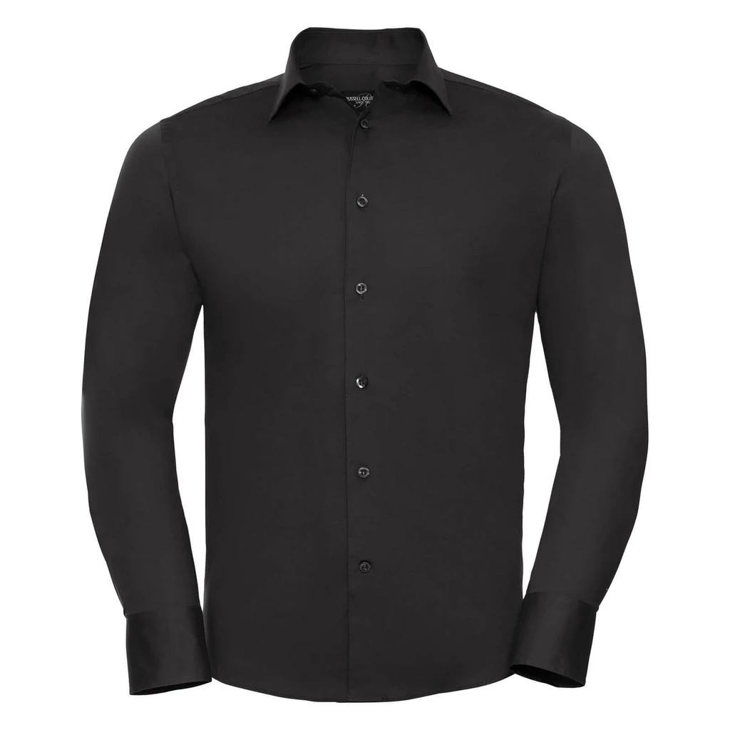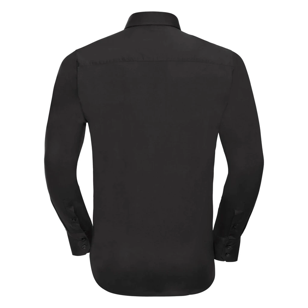 Gewicht:140 g/m²; Material: 97% Baumwolle, 3% Elastan-Popeline; Körperbetontes Stretch Hemd – Langarm; Glattes Gewebe mit leichtem, Stretch, Halb ausgestellter 1-Knopf-Kragen, Ton-in-Ton Knöpfe, Rückwärtige Schulterpasse, Abgeschrägte doppelt geknöpfte Manschetten, dazu ein Knopf auf dem Manschettenaufschlag, Körperbetonter Schnitt, Abgerundeter Saum, Ersatzknöpfe, Pflegeleicht (Easy Care); Zertifikate: STANDARD 100 by OEKO-TEX®; WRAP