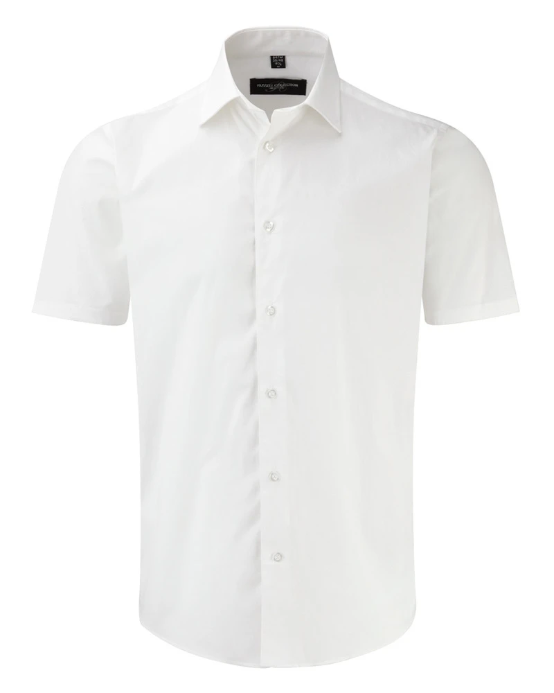 Gewicht: 140 g/m²; Material: 97% Baumwolle, 3% Elastan-Popeline; Tailliertes Stretch-Hemd; Glattes Gewebe mit leichtem Stretch, Halb ausgestellter 1-Knopf-Kragen, Ton-in-Ton Knöpfe, Rückwärtige Schulterpasse, Körperbetonter Schnitt, Abgerundeter Saum, Ersatzknöpfe, Pflegeleicht (Easy Care); Zertifikate: STANDARD 100 by OEKO-TEX®; WRAP