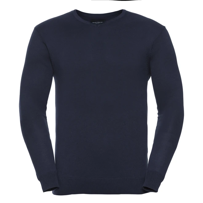 Gewicht: 275 g/m²; Material: 50% Baumwolle, 50% Polyacryl; Herren Strickpullover – V-Ausschnitt; Pflegeleichtes CottonBlend™ Material, Glattgestrickter Pullover mit V-Ausschnitt, Ärmelbündchen und Taillenbund aus Rippstrick mit Elasthan, Ideal zum Besticken, Maschinenwaschbar bis 40°C. Zertifikate: STANDARD 100 by OEKO-TEX®; WRAP