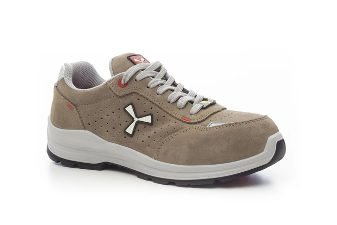 Niedriger Damen-Sicherheitsschuh, Obermaterial aus wasserabweisendem und atmungsaktivem, gelochtem Spaltleder, atmungsaktives und abriebfestes Innenfutter (auf der gesamten Innenfläche), 1+1 metallfreie Ösen und 6+6 verstärkte Schnürsenkellöcher, reflektierende Einsätze an der Hinterkappe und auf der Außenseite der Spitze, Zehenschutzkappe aus druckgegossenem Aluminium, herausnehmbare Einlage Ortholite X40 016 ESD, zertifizierte durchtrittsichere Sohle aus Verbundgewebe, Versteifungselement zum Schutz vor Verdrehungen, hufeisenförmiger Spitzenschutz, Zwischensohle aus federleichtem Polyurethan ESD, Dämpfungssystem MASTER BALANCE aus PU-Polyether von hoher Bruchfestigkeit und ausgewogener Dichte, X-TRAIL-GRIP-Sohle aus TPU ESD mit Fersen- und Zehenschutz