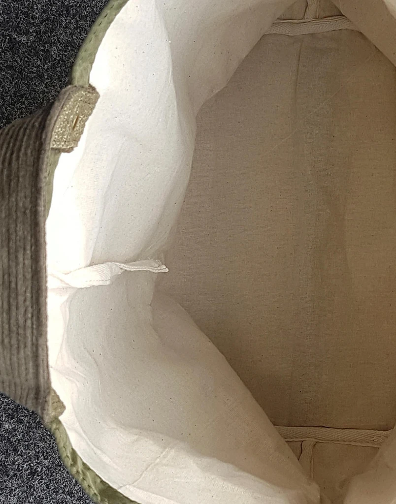 Die Tasche kann mit Stoffbändern verschlossen werden