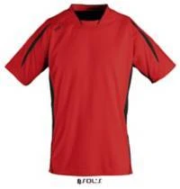 große Einsätze von Piqué-Stoff an der Seite, Entfeuchtungsmittel Mesh an den Ärmeln, hinten und sehr lang, Logo kontrastierte Gestik, zur Sublimation geeignet