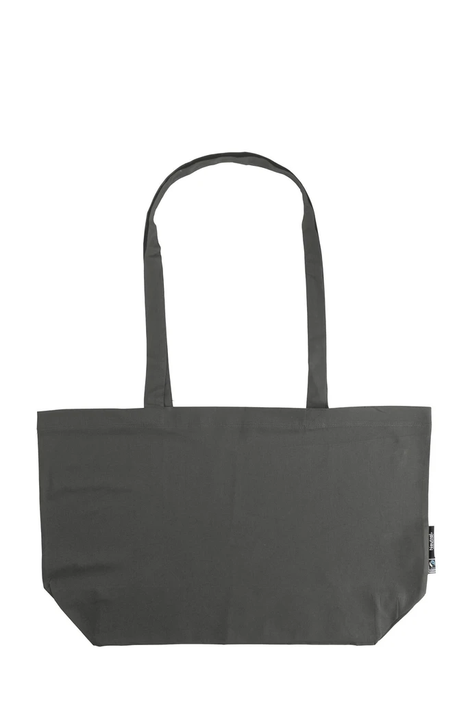 Material: 100% Bio-Fairtrade-Baumwolle, leinwandgewebe; Gewicht: 120 g/m²; Leichte Leinwandbindung. Lange Griffe, Größen: 51 x 32 cm. An Spannungspunkten verstärkt. Neutral® & Fairtrade Flaglabels an der Seite; Zertifikate: OEKO-TEX® STANDARD 100, 100% CERTIFIED ORGANIC COTTON, FAIR WEAR, EU ECOLABEL, SA8000, NEUTRAL® RESPONSIBILITY