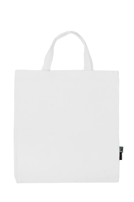Material: 100% Bio-Fairtrade-Baumwolle, leinwandgewebe; Gewicht: 120 g/m²; Leichte Leinwandbindung. Kurze Griffe (36 cm). An Spannungspunkten verstärkt. Größen: 38 x 42 cm. Neutral® & Fairtrade Flaglabels an der Seite; Zertifikate: OEKO-TEX® STANDARD 100, 100% CERTIFIED ORGANIC COTTON, FAIR WEAR, EU ECOLABEL, SA8000, NEUTRAL® RESPONSIBILITY