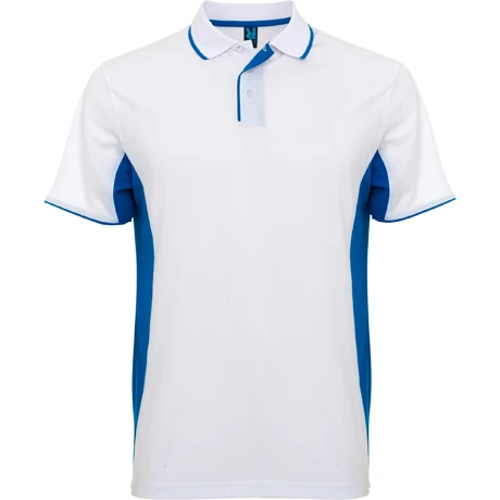 Funktions-Polo für den Sport. Kurzärmelig. 3-Knopfleiste. Kontrastfarben an Kragen, Innenseite der Knopfleiste, Ärmelbündchen und Seiteneinsätzen.