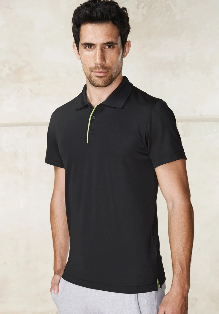 95% Polyester / 5% Lycra ®. Atmungsaktives und schnelltrocknendes Antistatik-Gewebe. Piqué-Qualität. Rippstrickkragen. 3er Knopfleiste mit Kontrast-Paspel. Kontrast-Nackenband. Seitenschlitze. Doppelnahtverarbeitung an Ärmeln und Bund.