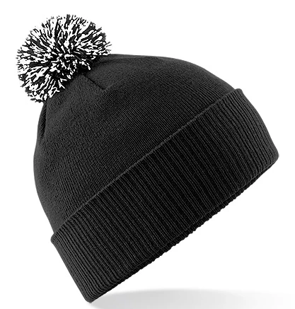 Tear-away Label für einfaches Neulabeln, Doppellagiger Strick, Zweifarbiger Pompon, Doppelfunktion - mit Umschlag als Mütze oder ohne Umschlag als Slouch-Beanie, Gerippter Umschlag