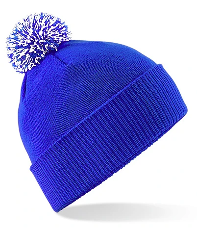 Tear-away Label für einfaches Neulabeln, Doppellagiger Strick, Zweifarbiger Pompon, Doppelfunktion - mit Umschlag als Mütze oder ohne Umschlag als Slouch-Beanie, Gerippter Umschlag
