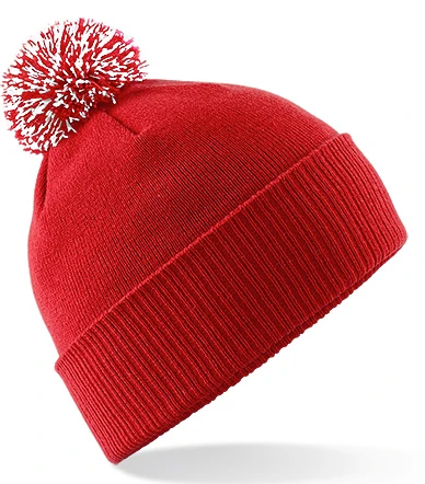 Tear-away Label für einfaches Neulabeln, Doppellagiger Strick, Zweifarbiger Pompon, Doppelfunktion - mit Umschlag als Mütze oder ohne Umschlag als Slouch-Beanie, Gerippter Umschlag