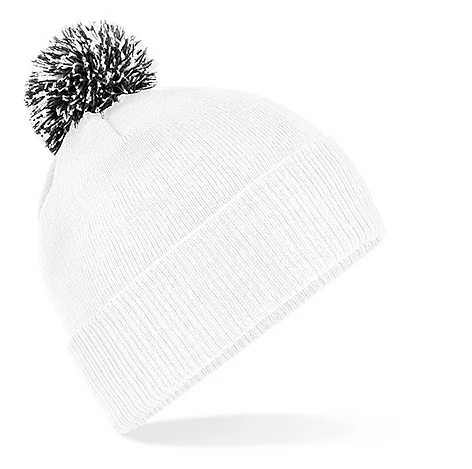 Tear-away Label für einfaches Neulabeln, Doppellagiger Strick, Zweifarbiger Pompon, Doppelfunktion - mit Umschlag als Mütze oder ohne Umschlag als Slouch-Beanie, Gerippter Umschlag
