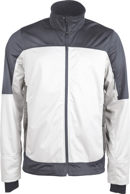 100% Polyester. 3-lagig, atmungsaktiv 5000 g/m2/24h und wasserabweisend 5000 mm. Außenschicht: 100% Polyester, Mittelschicht: atmungsaktiv. Innenschicht: 100% Polyester. Körpernaher Schnitt. Ärmelbund mit Elasthan und Öffnung für Daumen. Durchgehender Reißverschluß. 2 Vordertaschen mit Reißverschluß. Eine Tasche mit Reißverschluß auf dem linken Ärmel. Gedoppelter Polytrikot-Kragen. Reflektierende Paspeln vorne, hinten und an den Ärmeln. 2 Reißverschluß-Taschen vorne sowie 1 Reißverschluß-Tasche auf dem linken Arm. Verdeckter Reißverschluß in der linken Innenseite zum Veredeln.
