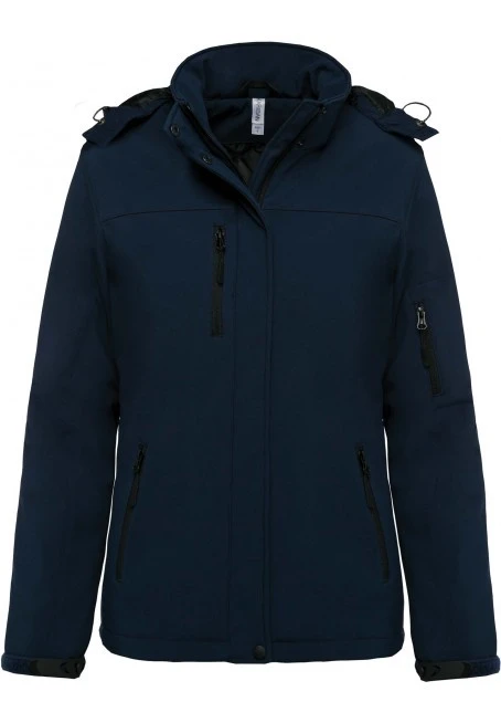 95 % Polyester / 5 % Elasthan. Dreilagiges Verbundgewebe atmungsaktiv 3.000 g/m²/24 h und wasserdicht 8.000 mm. Außenmaterial: 95 % Polyester / 5 % Elasthan. Atmungsaktive Mittelmembran. Innenschicht: Mikrofleece. Innenfutter gesteppt, 100 % Polyester. Vorderseite: 4 Reißverschlusstaschen (2 Seitentaschen, 1 am Ärmel, 1 an der rechten Brustseite). 2 Innentaschen mit Druckknopfverschluss. Abnehmbare Kapuze in 3-Bahnen-Design, gefüttert und gesteppt, Kordel mit Stoppern zum Zuziehen. Klettverschluss am Ärmel zur Weitenregulierung. 1 Reißverschluss an der Brusttasche und 1 Reißverschluss am Saum zur Veredelung.