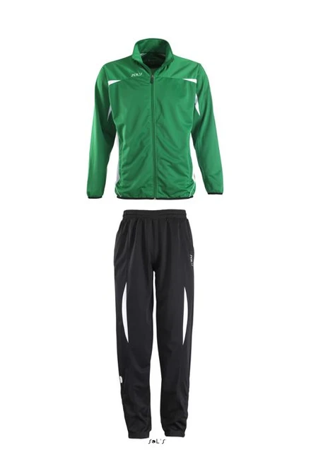 Qualität: 100% glänzender Interlock-Polyester; Jacke - Abschluss an Taille und Ärmeln mit elastischem Schrägband, 2 Reißverschlusstaschen große, atmungsaktive Mesh-Einsätze an Seiten und Ärmeln, Ärmelabschluss mit elastischem Schrägband, branded Zipper Pull, Logo & Marke kontrasterend gestickt, Hose elastischer Bund mit Zugkordel, kontrastierende, atmungsaktive Mesh-Einsätze, 2 Reißverschlusstaschen Logo und Marke kontrastierend gestickt