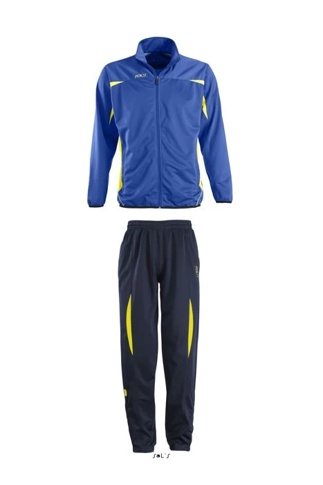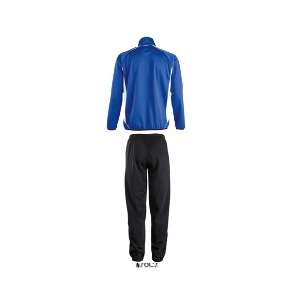 Qualität: 100% glänzender Interlock-Polyester; Jacke - Abschluss an Taille und Ärmeln mit elastischem Schrägband, 2 Reißverschlusstaschen große, atmungsaktive Mesh-Einsätze an Seiten und Ärmeln, Ärmelabschluss mit elastischem Schrägband, branded Zipper Pull, Logo & Marke kontrasterend gestickt, Hose elastischer Bund mit Zugkordel, kontrastierende, atmungsaktive Mesh-Einsätze, 2 Reißverschlusstaschen Logo und Marke kontrastierend gestickt