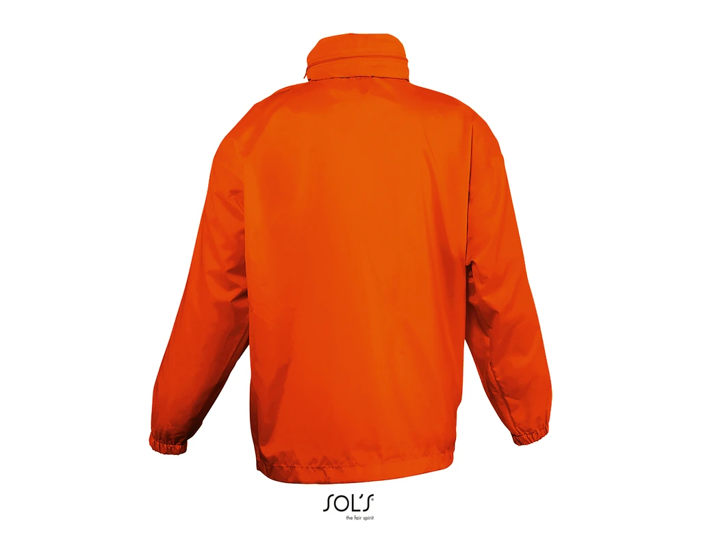 Qualität: 100% Polyamid 210T, wasserabweisend; Öffnung mit Reißverschluss, Kapuze mit Kordel im Kragen verstaubar, 2 RV-Taschen, Einstecktasche mit elastischem Gürtel, elastische Arm-Bündchen, Lüftungsösen, Kordel mit Stoppern am Saum