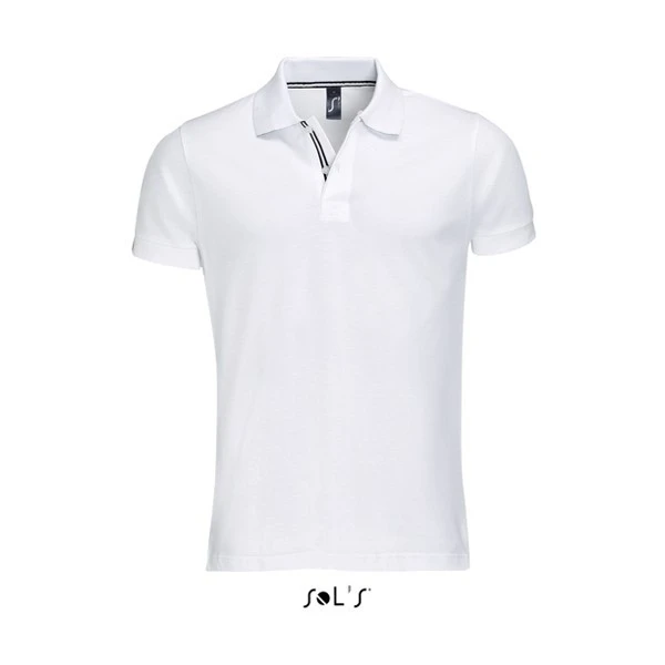 QUALITÄT: 200 PIQUÉ, 100% Baumwolle Ringspun; Kragen aus Feinripp 1x1, kontrastierendes Nackenband, Knopfleiste mit 2 Knöpfen, (Perlmutt Imitat), Nackenband, Knopfleiste und Seitenschlitze gestreift, Seitennähte, fitted cut. Ersatzknopf innen am Seitenlabel; Zertifikat: STANDARD 100 by OEKO-TEX®