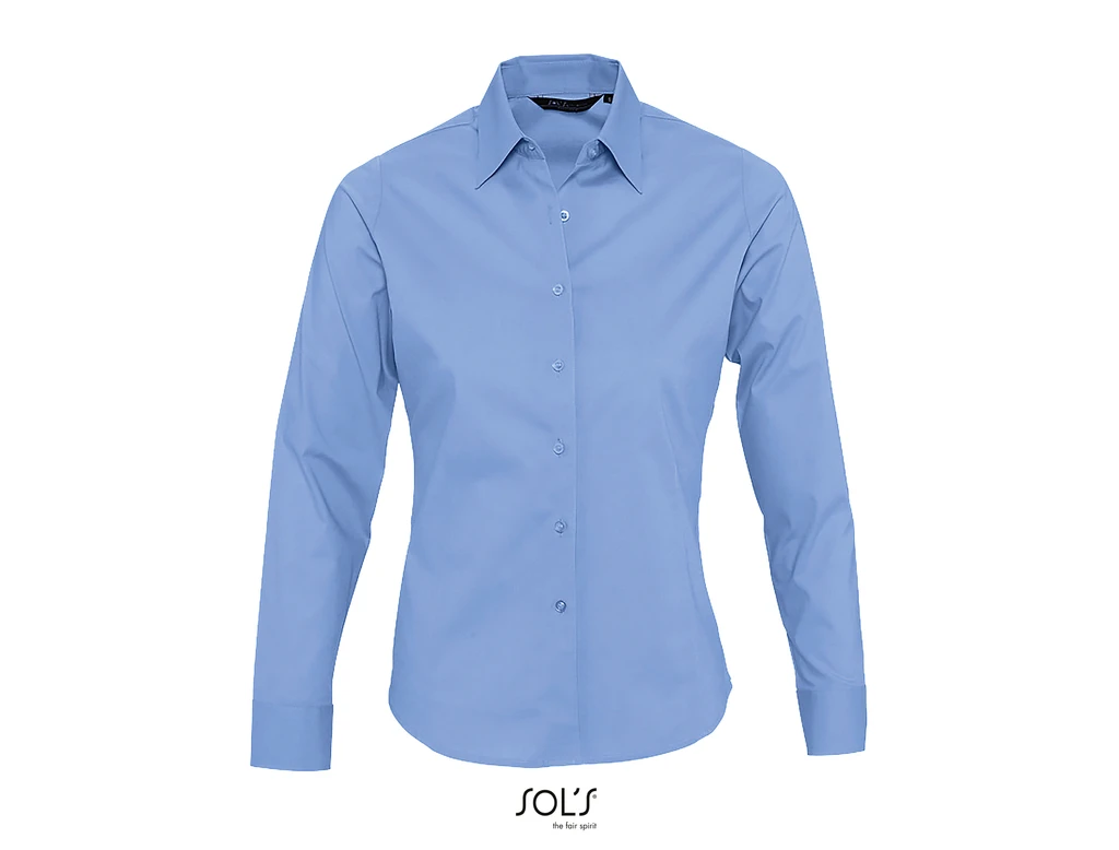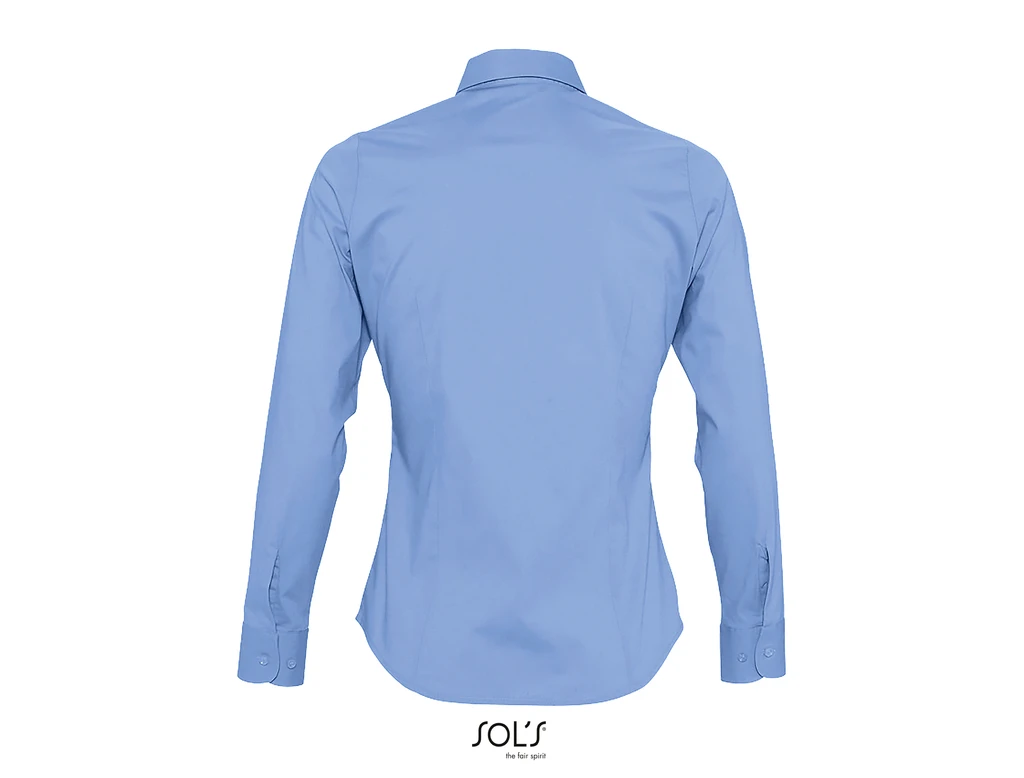 Qualität: POPELINE - 97% Baumwolle, 3% Elasthan, Gewicht: 140g/m2; Stil: TRENDY & FEMININ, figurbetonter Schnitt, Stretchstoff, Kragen mit einem Knopf, Knopfleiste mit 7 farblich abgestimmten Knöpfen, Langarm, Abnäher vorne und hinten, Bündchen mit 2 verstellbaren Knöpfen und Patte