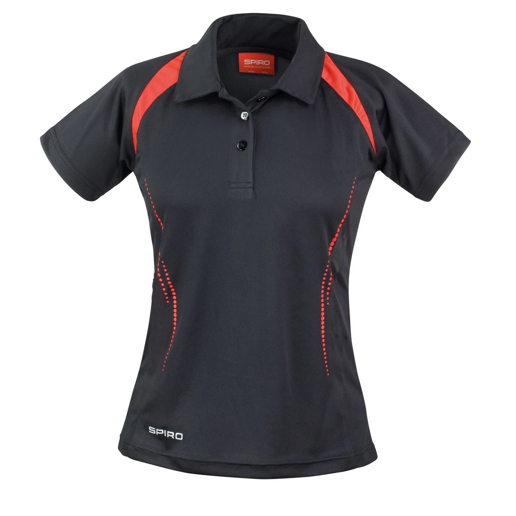 145 g/qm • 100% Polyester • Funktionspolo aus Cool-Dry-Netz in Waffeloptik • Nackenband • Raglanärmel mit Kontrasteinsatz • 3er-Knopfleiste • Atmungsaktive Struktureinsätze an den Seiten • Vorderseite mit aufgedrucktem Punkte-Muster und Spiro-Logo unten rechts • Verlängerter Rücken • Doppelnaht an Ärmelabschluss und Bund • Seitennähte • Für Stick und Druck geeignet.