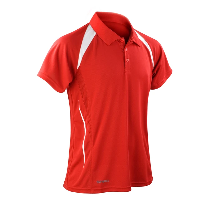 145 g/qm • 100% Polyester • Funktionspolo aus Cool-Dry-Netz in Waffeloptik • Nackenband • Raglanärmel mit Kontrasteinsatz • 3er-Knopfleiste • Atmungsaktive Struktureinsätze an den Seiten • Vorderseite mit aufgedrucktem Streifen-Muster und Spiro-Logo unten rechts • Verlängerter Rücken • Doppelnaht an Ärmelabschluss und Bund • Seitennähte • Für Stick und Druck geeignet.