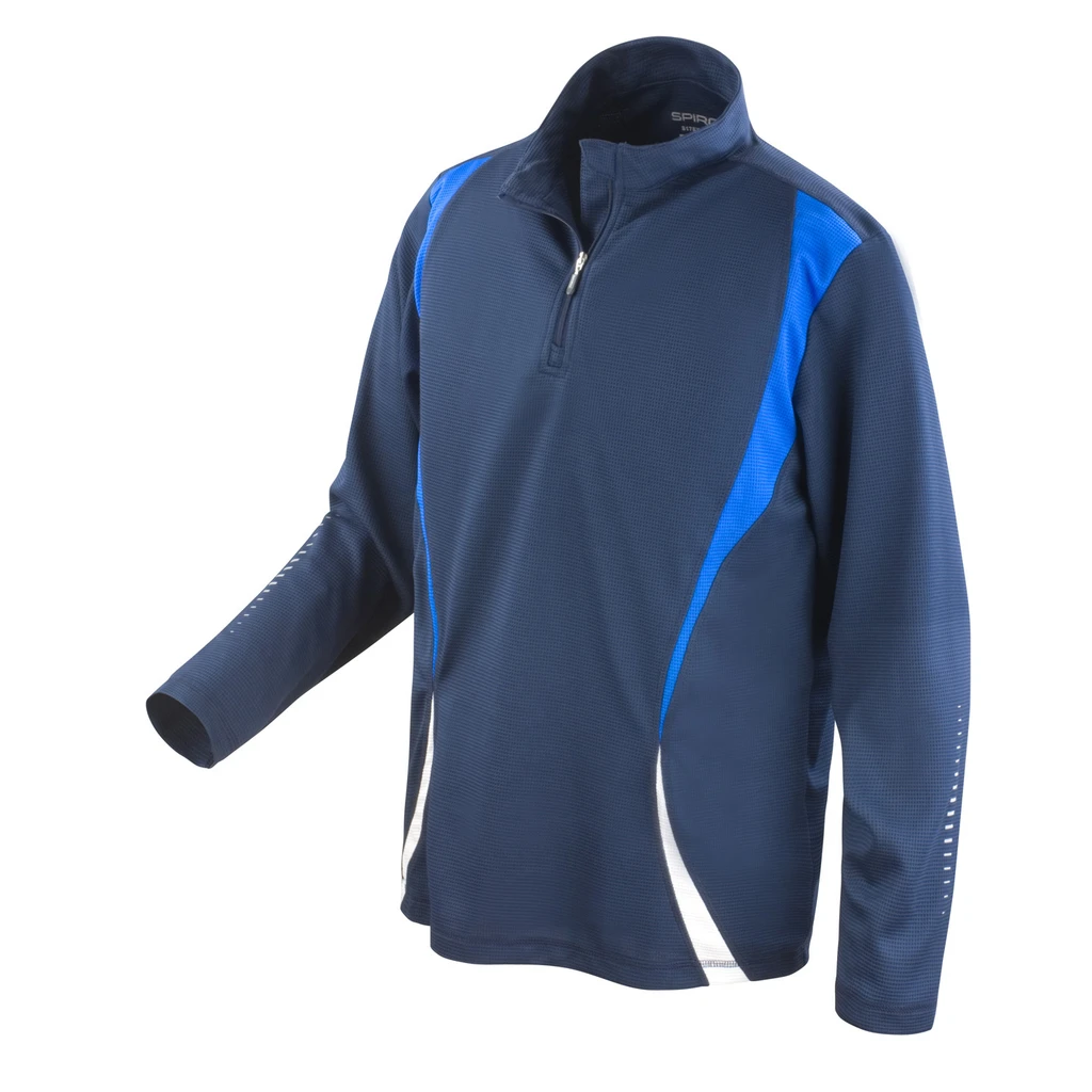 185 g/qm • 100% Polyester • Langarm-Funktionsshirt • Stehkragen • 1/4-Zip mit Kinnschutz • Farbige Kontrasteinsätze auf Vorder- und Rückseite • Streifen-Muster auf dem Unterarm • Ziernaht an Ärmelabschluss und Bund • Seitennähte • Für Stick und Druck geeignet.