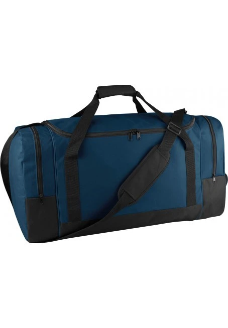 Team-Sporttasche aus 600D Polyester mit PVC-Beschichtung. 2 Seitentaschen und ein Schuhfach, abnehmbarer verstärkter Schultergurt. Transparenter Adressanhänger für problemlose Identifizierung, mittleres Modell: 55 Liter. SBS-Reißverschlüsse.