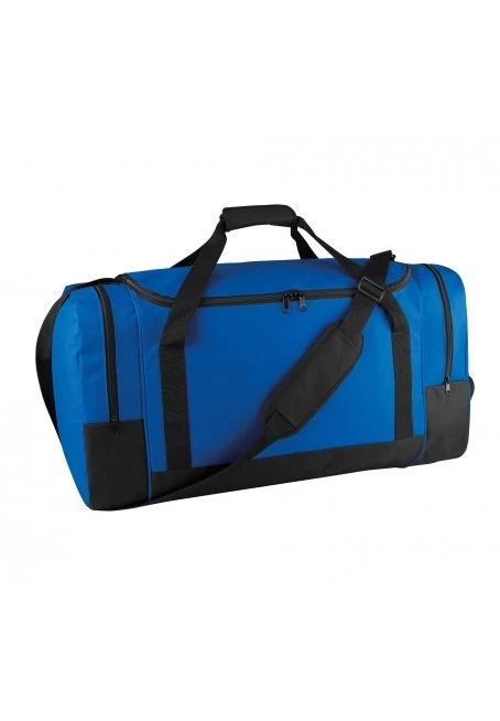 Team-Sporttasche aus 600D Polyester mit PVC-Beschichtung. 2 Seitentaschen und ein Schuhfach, abnehmbarer verstärkter Schultergurt. Transparenter Adressanhänger für problemlose Identifizierung, mittleres Modell: 55 Liter. SBS-Reißverschlüsse.