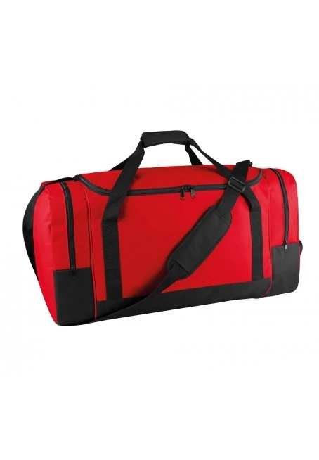 Team-Sporttasche aus 600D Polyester mit PVC-Beschichtung. 2 Seitentaschen und ein Schuhfach, abnehmbarer verstärkter Schultergurt. Transparenter Adressanhänger für problemlose Identifizierung. Großes Modell: 85 Liter. SBS-Reißverschlüsse.
