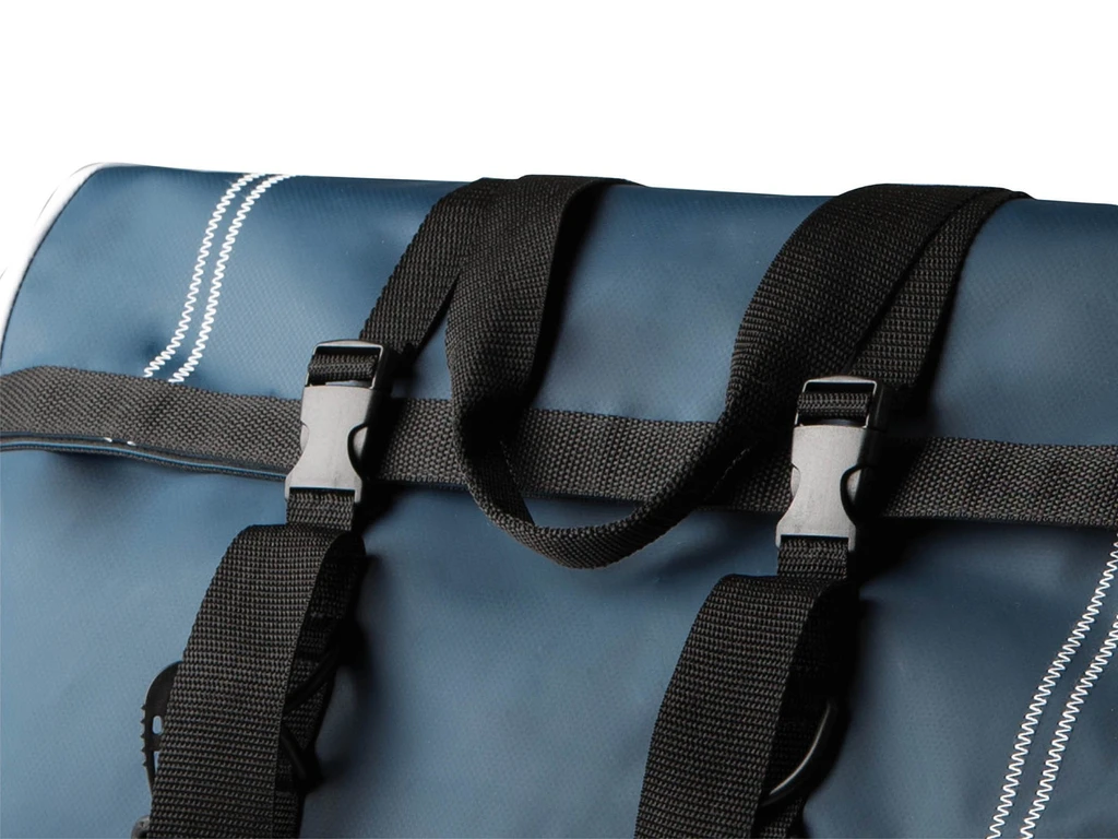 Durchgängig wasserfeste Persenning-Beuteltasche, PVC. Einrollverschlußsystem mit Schnallen, ideal am Meer oder bei Fahrten mit dem Motorrad.