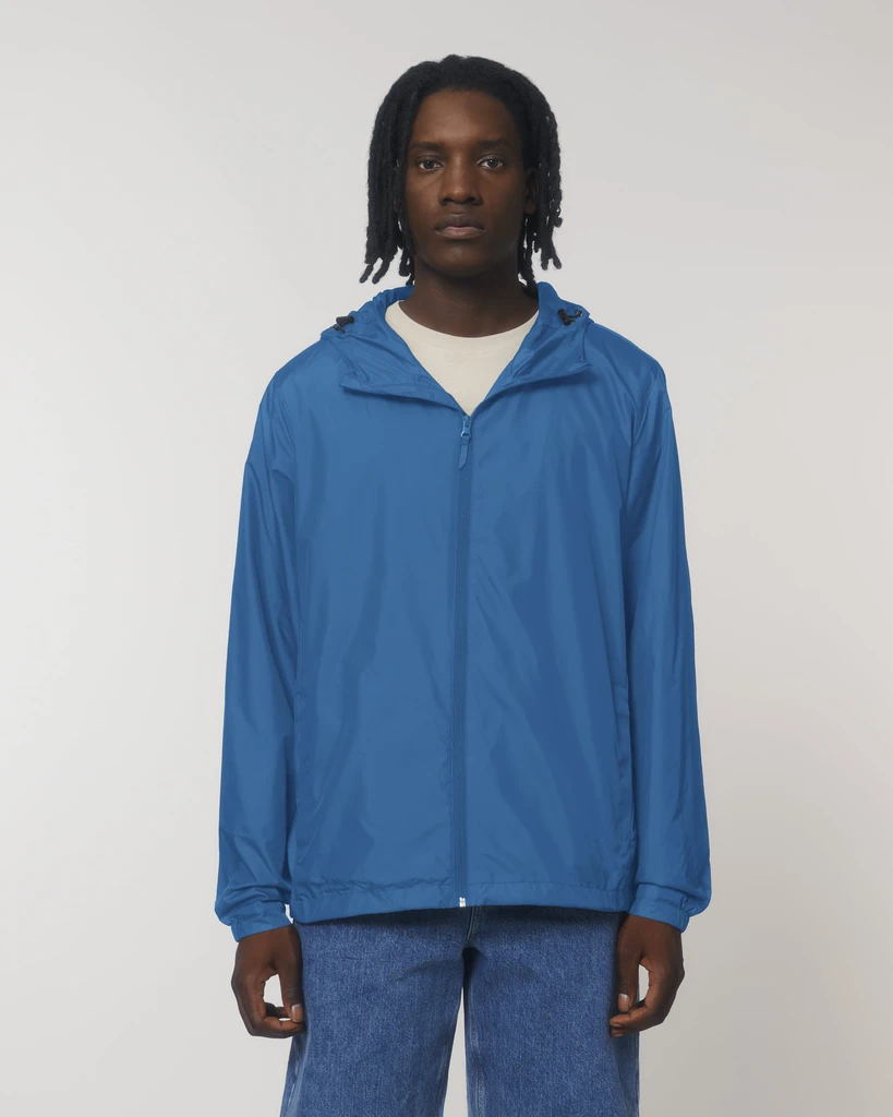 Material: 100 % recyceltes Polyester, fluorfreie DWR; Gewicht: 75g/m²; Mittlere Passform, angesetzte Ärmel, längere Rückenlänge mit abgerundetem Saum zum Schutz. unterer Saum mit verstellbarem Kunststoffstopper und elastischer Kordel, versiegelter Kapuzenschirm und versiegelte Leistentaschen, doppellagige Kapuze mit verstellbarem Kunststoffstopper und elastischer Kordel innen, umgekehrter Nylon-Reißverschluss vorne mittig mit Kinnschutz, Leistentaschen mit Reißverschluss und extra Ripsbandschieber, seitlich Einsätze für eine bessere Form, halbelastische Ärmelbündchen, Halbmond aus dem gleichen Stoff am Nacken, innere Reißverschlussöffnung am unteren Saum und auf der linken Brust des Trägers für eine einfache Dekoration; Zertifikate: Global Recycled Standard (GRS), Fair Wair, STANDARD 100 by OEKO-TEX®, Peta - Approved VEGAN
