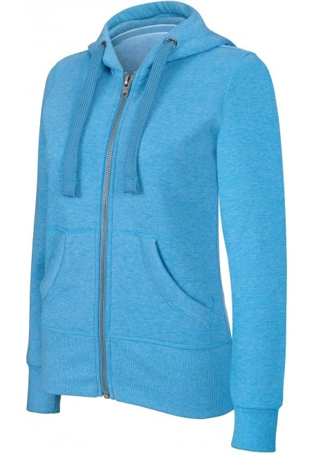 60 % Polyester / 40 % Baumwolle. Gebürstetes, leicht gemustertes Fleece. Gefütterte Kapuze mit Wabenstruktur. Nackenband am Kragen. Kängurutaschen. Strickbündchen an Ärmeln und Saum. Kein Markenetikett, nur Größenkennzeichnung am Kragen für eine leichtere Veredelung.