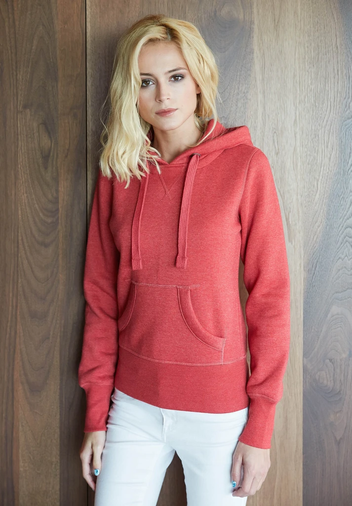 60 % Polyester / 40 % Baumwolle. Gebürstetes, leicht gemustertes Fleece. Gefütterte Kapuze mit Wabenstruktur. Nackenband am Kragen. Kängurutasche. Strickbündchen an Ärmeln und Saum. Kein Markenetikett, nur Größenkennzeichnung am Kragen für eine leichtere Veredelung.