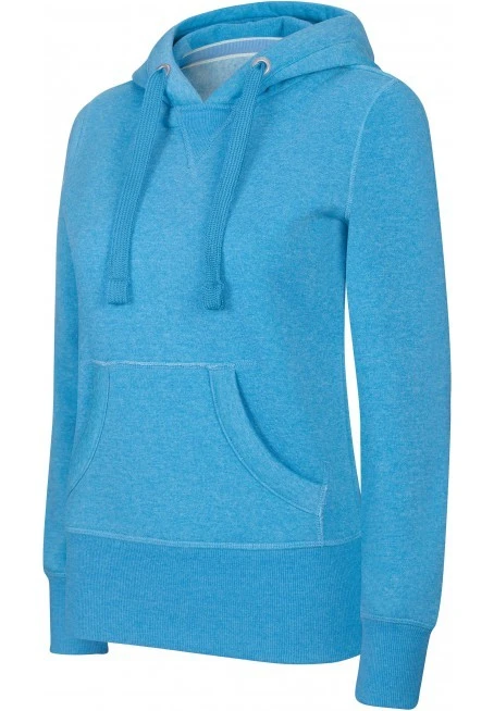 60 % Polyester / 40 % Baumwolle. Gebürstetes, leicht gemustertes Fleece. Gefütterte Kapuze mit Wabenstruktur. Nackenband am Kragen. Kängurutasche. Strickbündchen an Ärmeln und Saum. Kein Markenetikett, nur Größenkennzeichnung am Kragen für eine leichtere Veredelung.