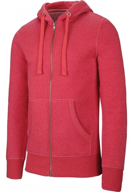 60 % Polyester / 40 % Baumwolle. Gebürstetes, leicht gemustertes Fleece. Gefütterte Kapuze mit Wabenstruktur. Nackenband am Kragen. Kängurutaschen. Strickbündchen an Ärmeln und Saum. Kein Markenetikett, nur Größenkennzeichnung am Kragen für eine leichtere Veredelung.