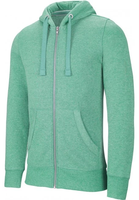 60 % Polyester / 40 % Baumwolle. Gebürstetes, leicht gemustertes Fleece. Gefütterte Kapuze mit Wabenstruktur. Nackenband am Kragen. Kängurutaschen. Strickbündchen an Ärmeln und Saum. Kein Markenetikett, nur Größenkennzeichnung am Kragen für eine leichtere Veredelung.