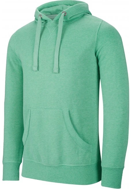 60% Polyester / 40 % Baumwolle. Gebürstetes, leicht gemustertes Fleece. Gefütterte Kapuze mit Wabenstruktur. Nackenband am Kragen. Kängurutasche. Strickbündchen an Ärmeln und Saum. Kein Markenetikett, nur Größenkennzeichnung am Kragen für eine leichtere Veredelung.