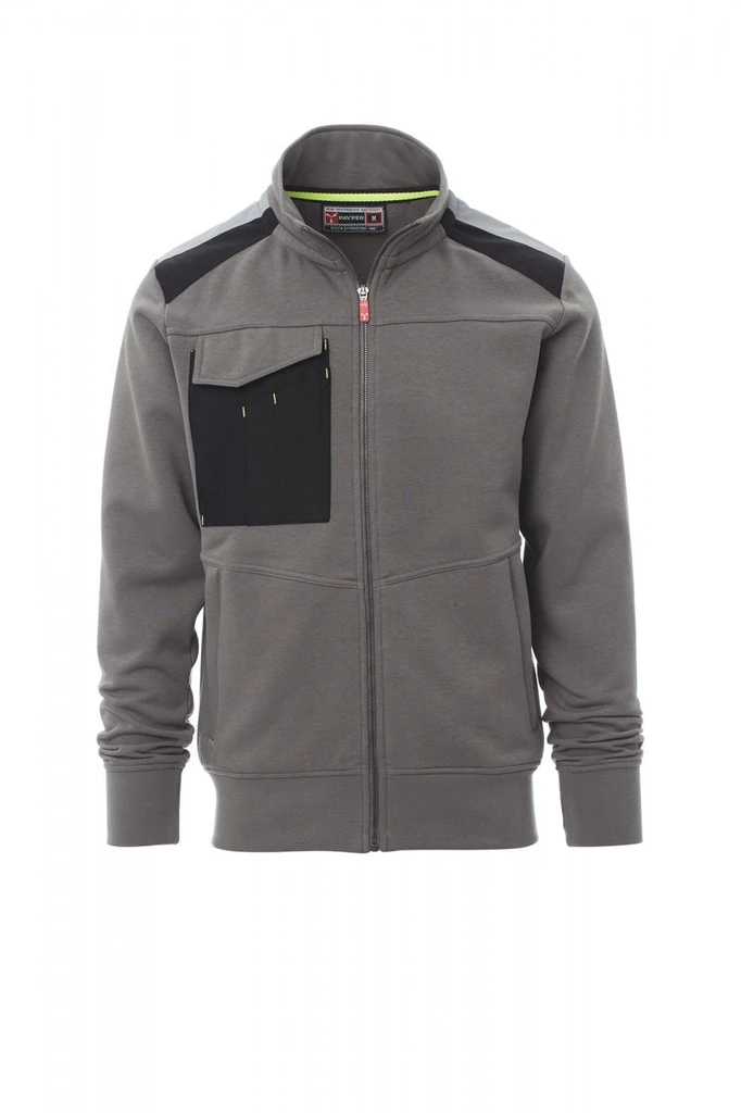 Herren-Sweatshirt, durchgehender SBS-Reißverschluss aus Kunststoff mit Autolock-Metallschieber, zwei Reißverschlusstaschen, eine multifunktionale Brusttasche mit verdecktem Einsteckfach für den Ausweis und Verschlusspatte mit „LOCK SYSTEM“, Reflexstreifen an den Schultern, elastischer Feinripp an Ärmelbündchen und Taille, Doppelnaht am Halsausschnitt, an den Ärmeln und an der Taille und Verstärkungsband am Nacken, Stoff mit wasserabweisender Behandlung