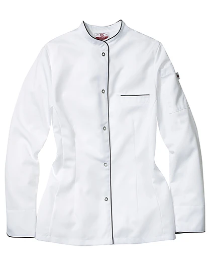 Taillierte Kochjacke, modisch geschnitten mit Stehkragen und abgesetzten Paspeln, aus hautfreundlichem Lyocell. Weich fließende Qualität. Hohe Feuchtigkeitsaufnahme und schnelle Trocknung sorgen für ein ideales Körperklima. Für optimale Hygiene bei 95° C waschbar.