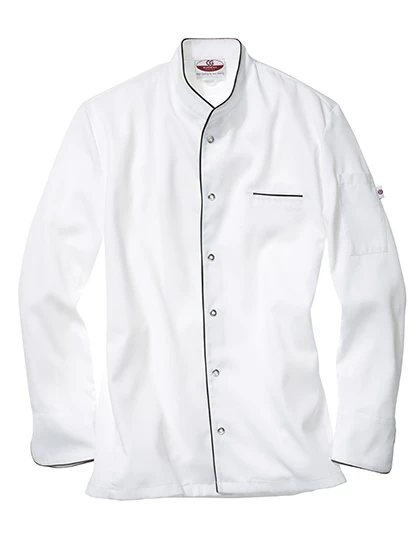Leicht taillierte Kochjacke, modisch geschnitten mit Stehkragen und abgesetzten Paspeln, aus hautfreundlichem Lyocell. Weich fließende Qualität. Hohe Feuchtigkeitsaufnahme und schnelle Trocknung sorgen für ein ideales Körperklima. Für optimale Hygiene bei 95° C waschbar.