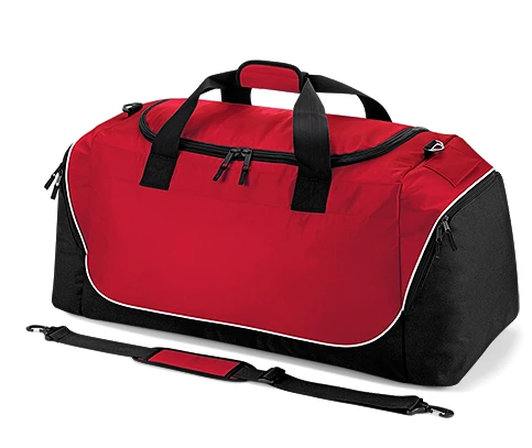 Verstellbarer, abnehmbarer Schulterriemen, Gepolsterter Griff, Stabile Gurtbandtragegriffe, Strapazierfähige Ausführung, Namensschild-Fach, 2 große Seitentaschen, Schützende Plastikfüße, Innenseitig verstärkter Boden; Maße: 85 x 38 x 35 cm; Fassungsvermögen: 110 Liter