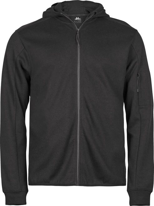 Dieser sportliche Kapuzenpullover mit Reißverschluss besteht aus einer Baumwoll-Polyester-Mischung und ist weich und bequem. Es hat eine elastische Kapuze und einen Saum, zwei Vordertaschen und eine Ärmeltasche mit Reißverschluss. Das funktionale Design von Sportoberteilen eignet sich sowohl für die Freizeit als auch für die Arbeit.