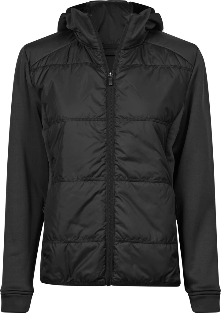 Diese Damen-Hybrid-Stretch-Kapuzenjacke besteht aus 300T-Polyestergewebe in Kombination mit Stretch-Fleece-Einsätzen und Ärmeln. Am Körper ist es mit hochwertiger DuPont™-Polsterung isoliert. Bündchen und Gummizug am unteren Saum sorgen für einen modernen Look. Es verfügt über hochwertige SBS-Reißverschlüsse, eine Innentasche und 2 große versteckte Vordertaschen. Die Kapuze macht die Jacke an kälteren Tagen besonders bequem.