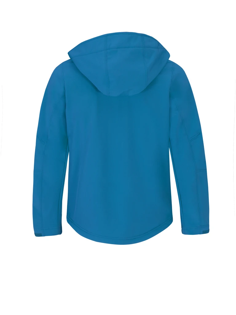 Außen: 94% Polyester, 6% Elasthan • Mittelschicht: atmungsaktive Membran mit Mikroporen • Innen: 100% Polyester, Antipilling-Fleece bzw. Polyester-Netzfutter • Größenverstellbare, abnehmbare Kapuze • Modischer, umgedreht eingenähter Full Zip • Windschutzblende innen mit Kinnschutz • Angesetzte Ärmel • Bündchen mit Klettverschluss • Eingrifftaschen • Hinten verlängerter Bund mi Kordelzug und Stoppern • Veredelungszugang auf linker Brustseite.