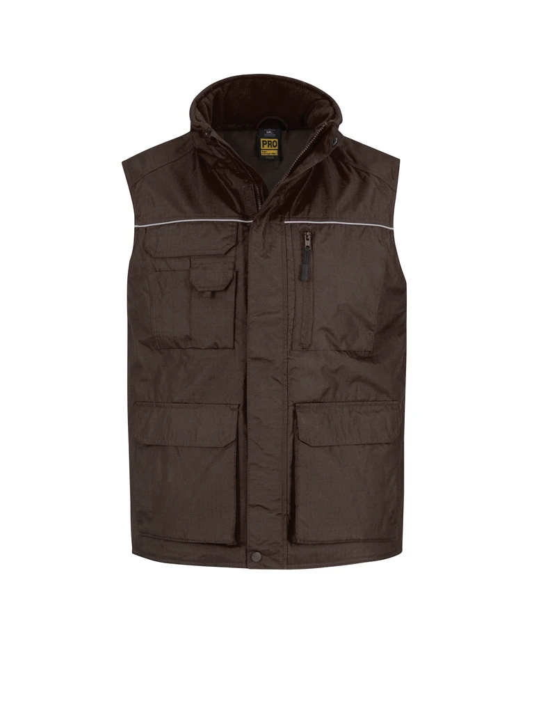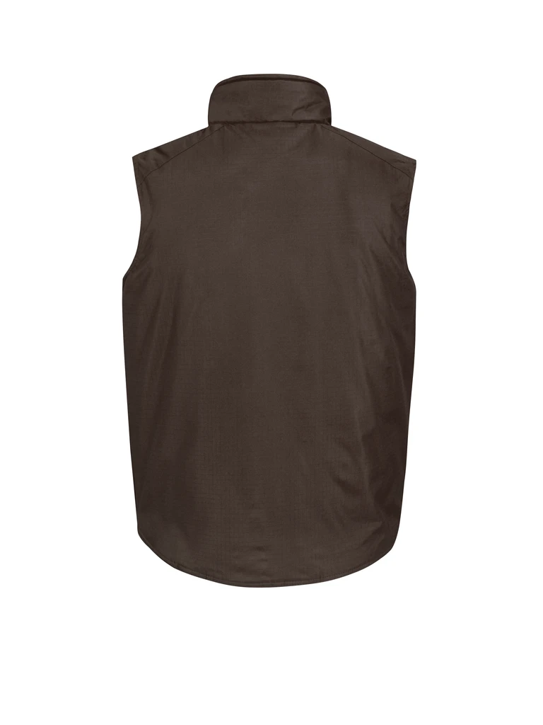 Außen: 100% Polyester (Ripstop) • Futter: 100% Polyester, wattiert • Stehkragen mit Fleecefutter • Full Zip mit Windschutzleiste • Elastischer Armausschnitt • Diverse Außen- und Innentaschen • Verlängertes, abgerundetes Rückenteil • Veredelungszugang über Zip im Rückenfutter.