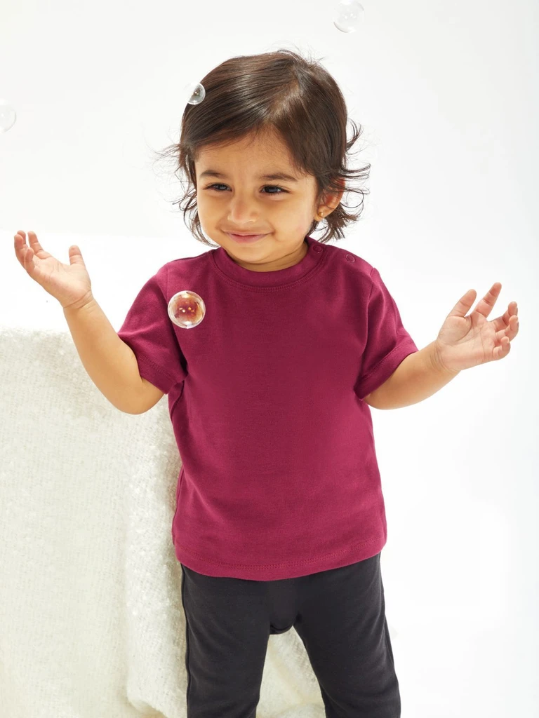 Weicher und dehnbarer Stoff 2 gleichfarbige Druckknöpfe am seitlichen Halsausschnitt Abdecknaht an den Säumen 1×1 Ripphalsausschnitt