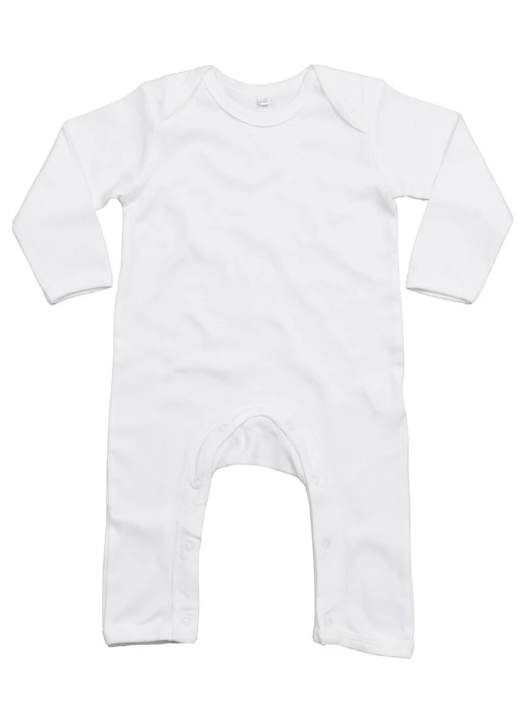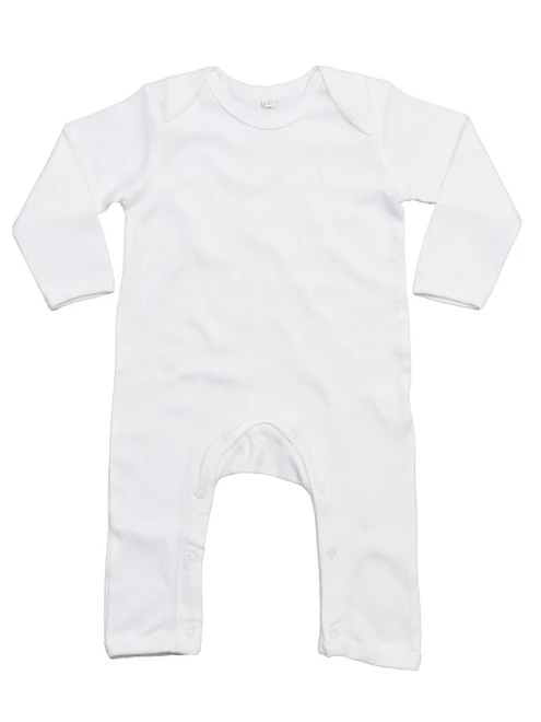 Lange Ärmel, Ganzkörper-Strampleranzug | Umschlaghalsöffnung | Selbstgebundene Bündchen, Beinöffnung und Halsausschnitt | Abgeschlossen mit einem schmalen Deckstich am Armloch und an der Innenseite der Beinöffnung | Gleichfarbige, nickelfreie Druckknöpfe an der Beinöffnung | Halsetikett in neutraler Größe zum einfachen Umetikettieren