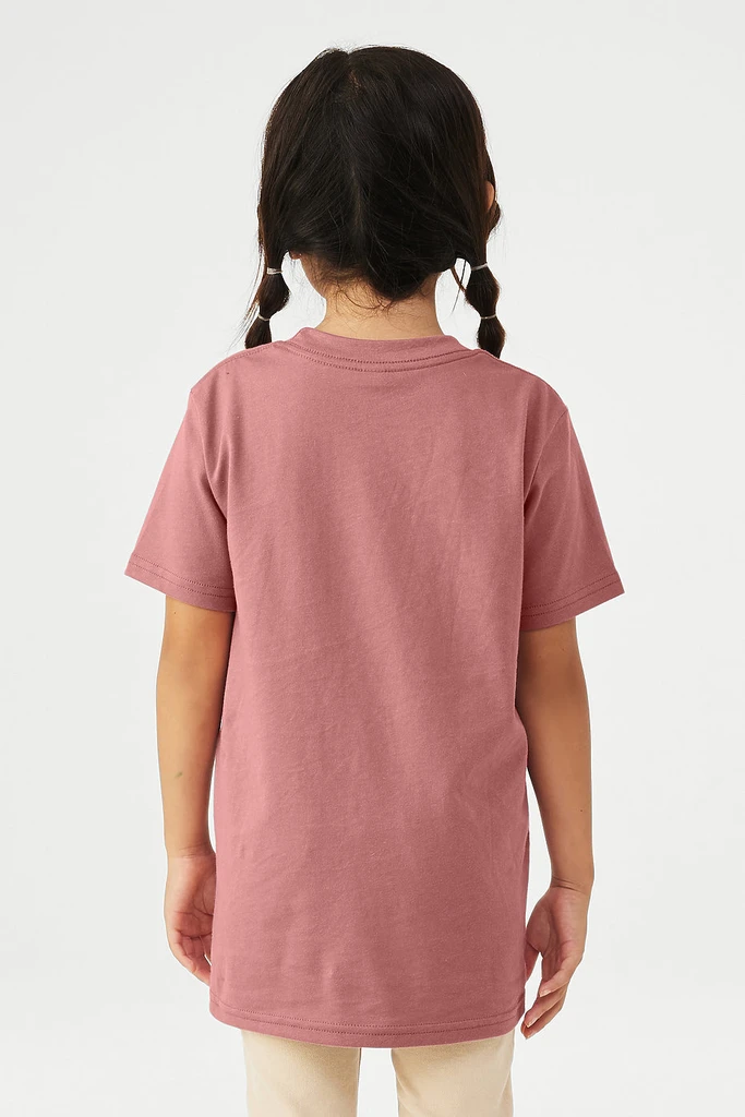 Das Kurzarm-T-Shirt für Kinder ist eine identische, verkleinerte Begleitsilhouette zu unserem meistverkauften Modell 3001. Dieses Jugend-Essential verfügt über einen Rundhalsausschnitt, eine klassische Passform mit Seitennähten und ist in einem Regenbogen aus 32 verspielten Farben erhältlich.