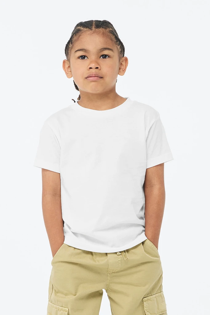 Das Kurzarm-T-Shirt für Kinder ist eine identische, verkleinerte Begleitsilhouette zu unserem meistverkauften Modell 3001. Dieses Jugend-Essential verfügt über einen Rundhalsausschnitt, eine klassische Passform mit Seitennähten und ist in einem Regenbogen aus 32 verspielten Farben erhältlich.