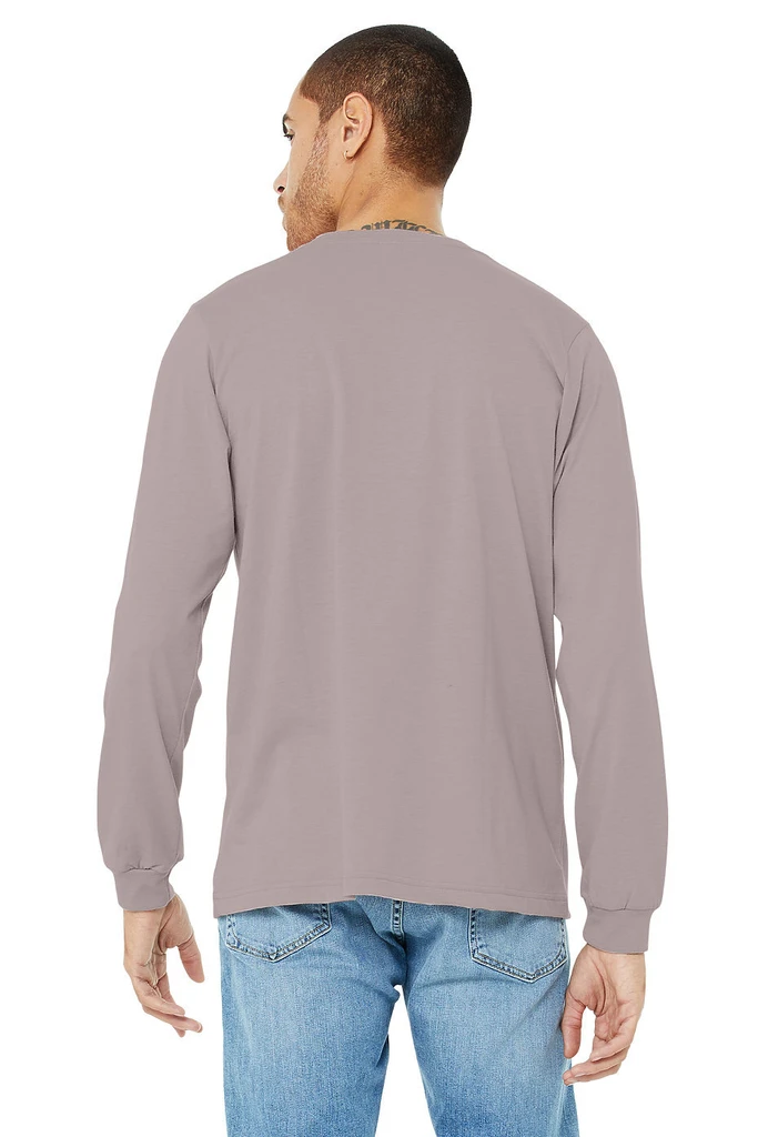 Dieses klassische Unisex-Jersey-T-Shirt sitzt wie ein beliebter Favorit und verfügt über einen klassischen Rundhalsausschnitt, lange Ärmel und hochwertige gekämmte und ringgesponnene Jersey-Baumwolle, die als leere Leinwand zum Bedrucken dient.