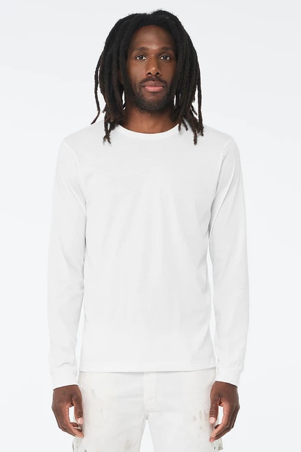 Dieses klassische Unisex-Jersey-T-Shirt sitzt wie ein beliebter Favorit und verfügt über einen klassischen Rundhalsausschnitt, lange Ärmel und hochwertige gekämmte und ringgesponnene Jersey-Baumwolle, die als leere Leinwand zum Bedrucken dient.