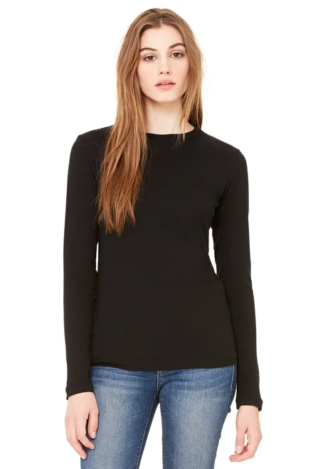 Dieses klassische Damen-Langarm-T-Shirt hat eine halb entspannte Passform, einen klassischen Rundhalsausschnitt, lange Ärmel und hochwertige gekämmte und ringgesponnene Airlume-Jersey-Baumwolle, die als leere Leinwand für den Druck dient.